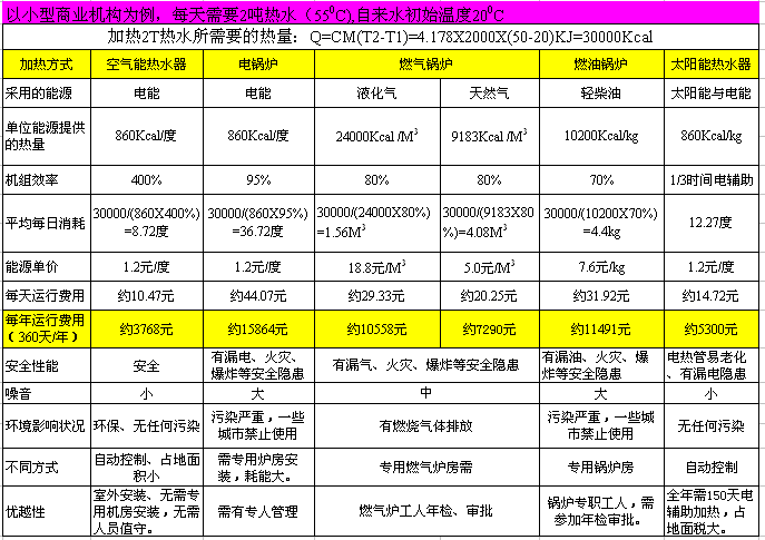 加热2吨热水耗能对比